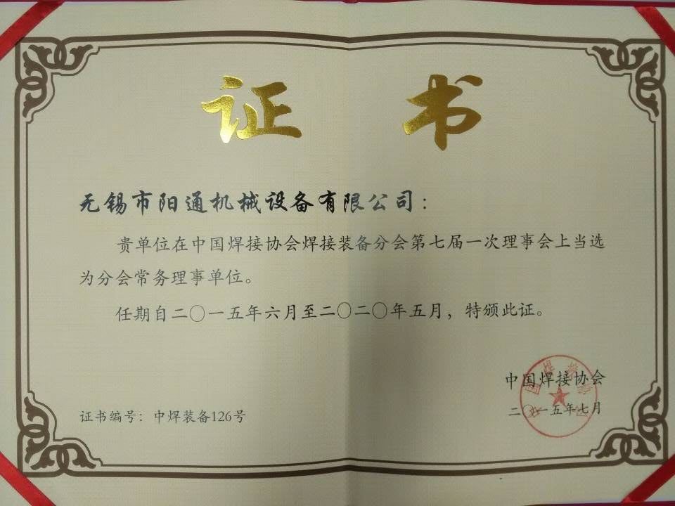 熱烈祝賀無錫市陽通機械設(shè)備有限公司連任中國焊接協(xié)會焊接裝備分會常務(wù)理事單位