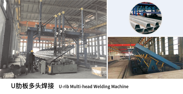 隨著大型鋼結(jié)構(gòu)橋梁工程的日益增多,橋面U肋板單元的生產(chǎn)制備因其批量大、工期緊、成型及焊接質(zhì)量要求高,實現(xiàn)自動化生產(chǎn)的必要性越發(fā)顯現(xiàn)。我司在為山海關(guān)橋梁廠、武船重工、上海振華港機、中泰橋梁等國內(nèi)多家橋梁生產(chǎn)廠家提供了各類橋面板單元生產(chǎn)設(shè)備。橋面板單元結(jié)構(gòu)如下圖: